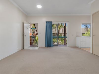 With a northerly aspect, the apartment is light and bright and offers two good-sized bedrooms, both with ceiling fans and built-ins, as well as a near-full-length balcony and lock-up garage with convenient rear-access.