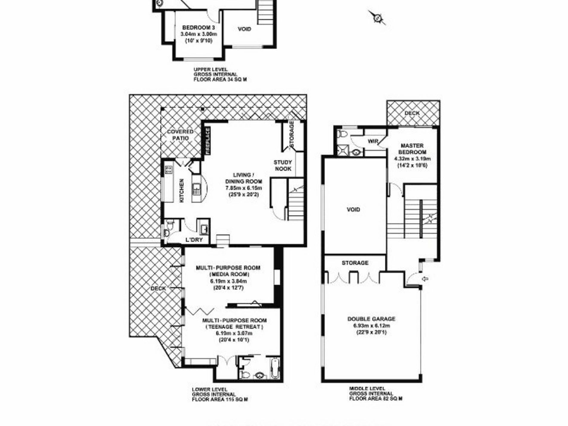 The lower levels host the living areas, a combination of timber and tiled flooring where you will discover the lounge, dining, study nook, laundry, another bedroom with en-suite with direct access to the side entertainment deck.