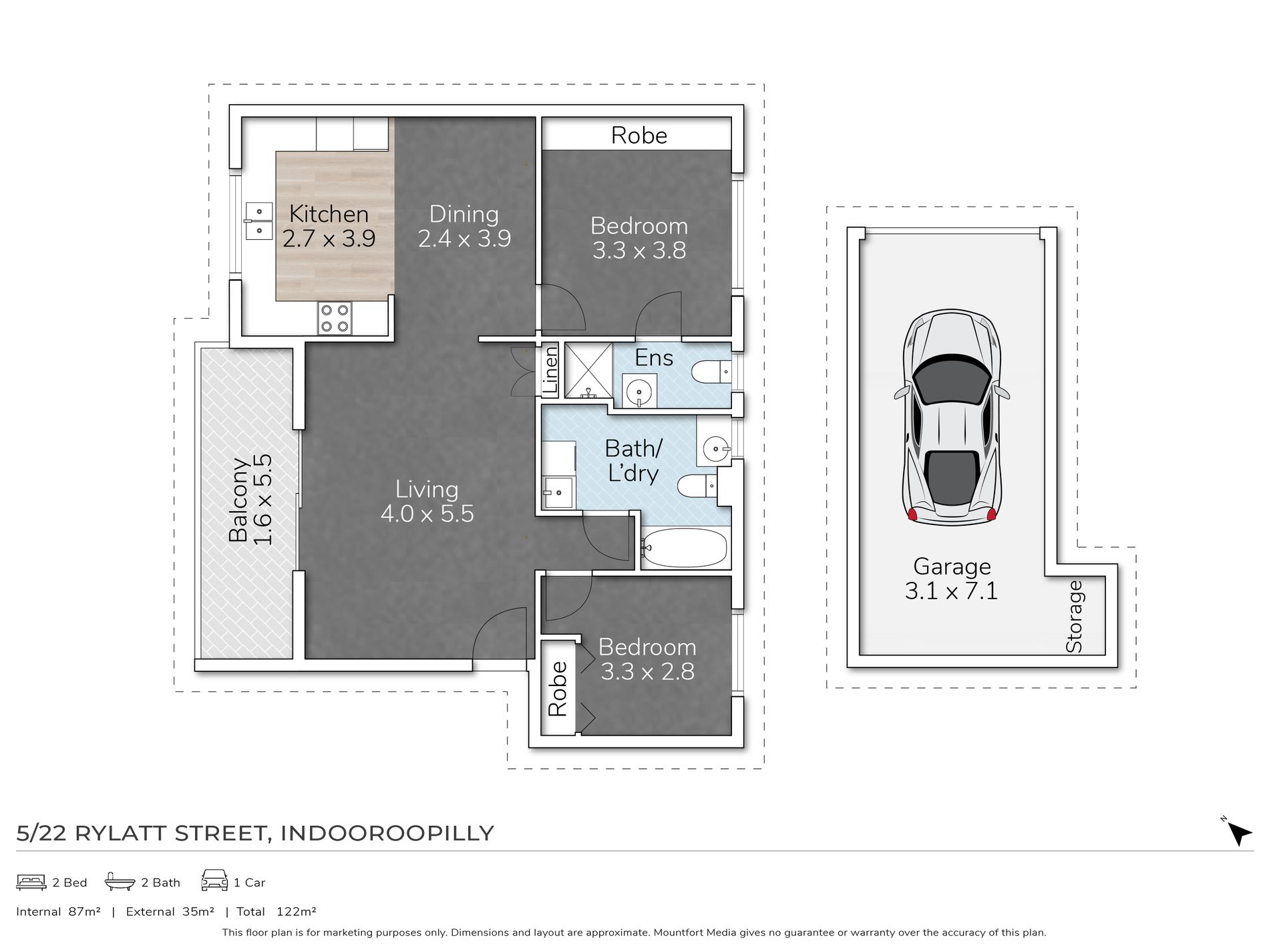 This spacious air conditioned, two bedroom, two bathroom unit contains a large open kitchen, king size bedrooms and a tranquil balcony overlooking a quiet leafy street. The property is around the corner from Indooroopilly Shopping Town and Station Road cafés and is a quick walk to trains and buses into town. Clothes dryer is included, plus a lock-up garage to secure your car. Great value!