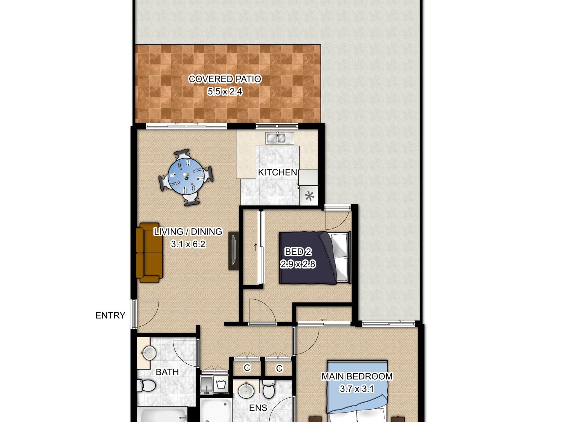 The apartment has an internal laundry, kitchen with dishwasher and electric cooking appliances, main bathroom with a bath, and both bedrooms have built-ins as well as direct access to the courtyard. The complex hosts 28 apartments, with secure intercom access and secure undercover parking. It has no lifts or pool, so you won't pay an arm and a leg in Body Corporate fees here.