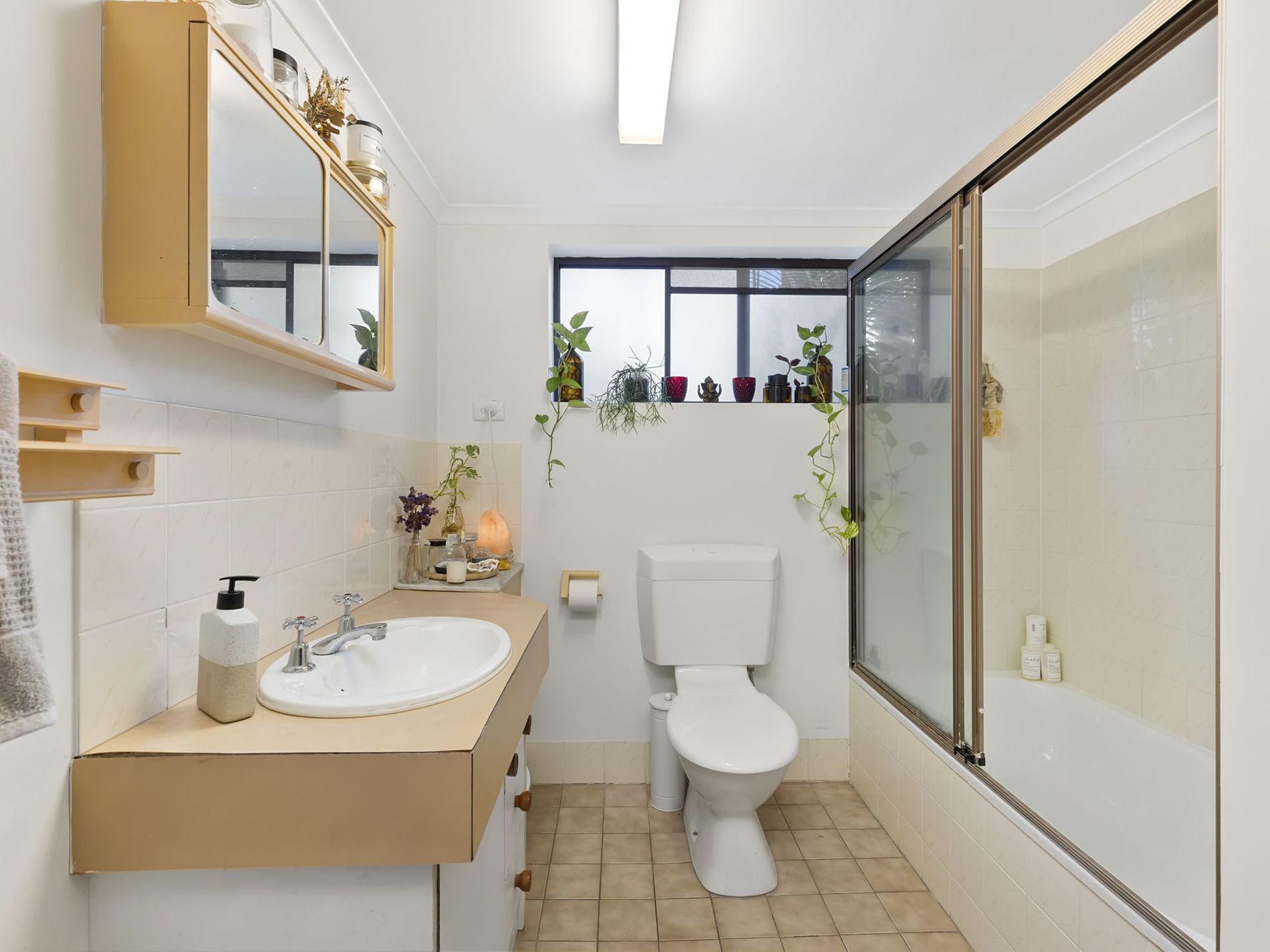 The spacious main bathroom has a shower over bath and an internal laundry.