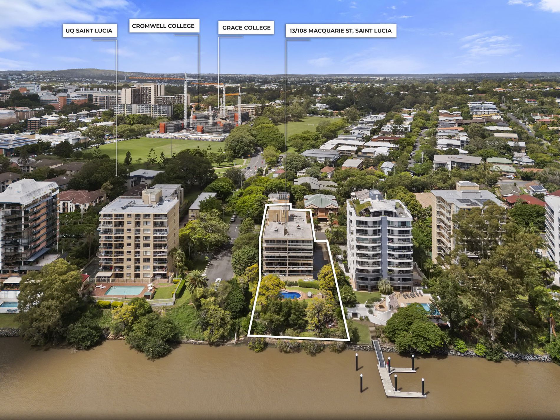 The complex has secure, intercom and fob access, with an inground, riverfront pool and BBQ area, as well as a secluded, riverfront seating area. Unit 13's extra-large, tandem garage has remote-access from the upper parking podium, ample storage space plus a dedicated storage cupboard, and direct access into the main foyer. The location is an effortless 400m stroll down to Guyatt Park and the CityCat Terminal, just 160m to the entrance to The University of Queensland, a short drive to Toowong Village, 3km to The Wesley Hospital and 5km to the CBD.