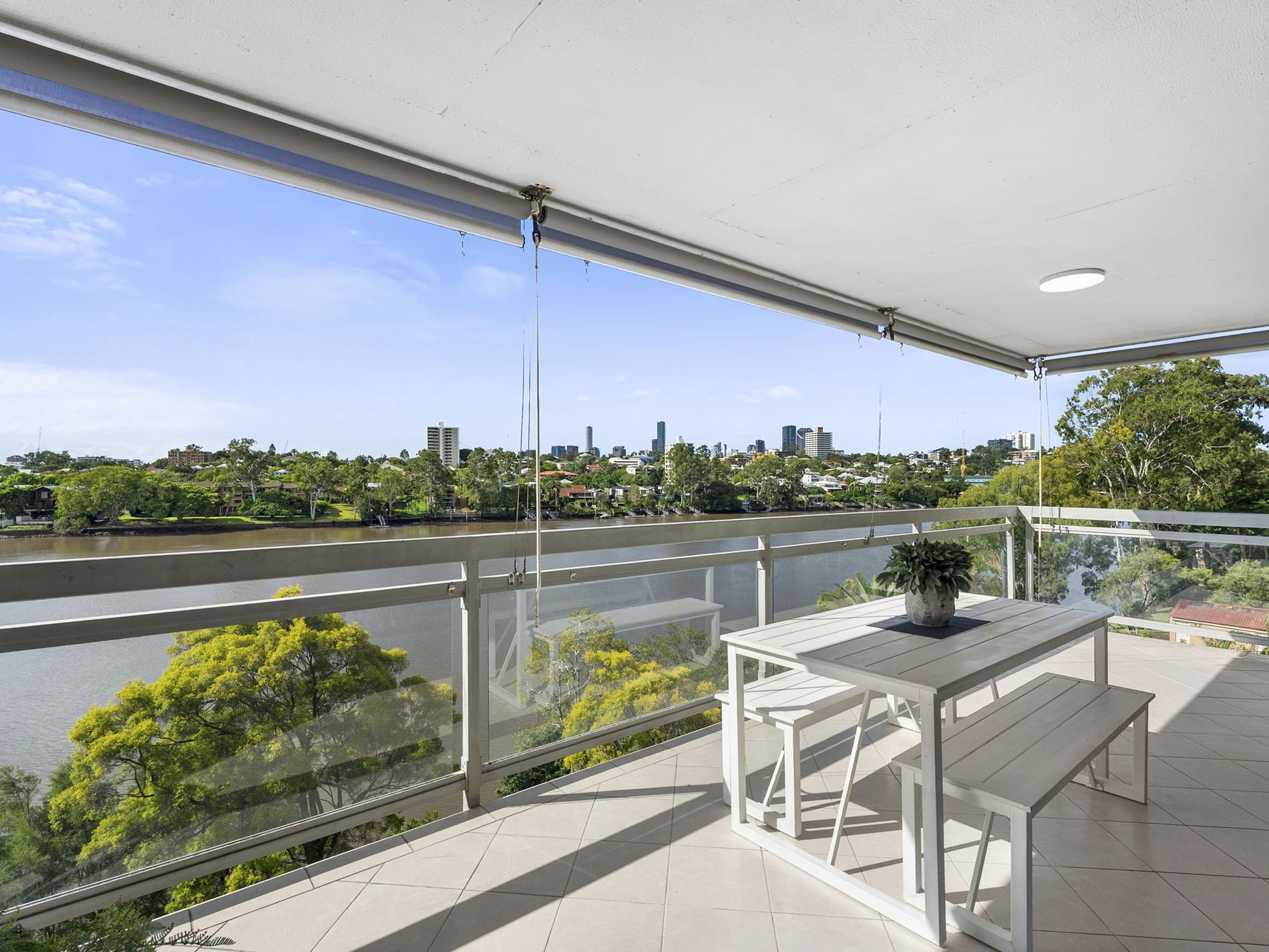 The penthouse, corner position already provides a high level of privacy, but add to that the Munro Street frontage and you've got exceptional privacy. It's also difficult to overstate just how serene the location is, while the layout and orientation help to capture those ever-present river breezes, providing natural climate control. The full-width balcony is deeper than the average, allowing you to really make the most of a fantastic outdoor space and soak up the views in comfort and style, with weather screens allowing you to continue to enjoy the space even when the weather turns against you. Tiled throughout, the home is incredibly low-maintenance. Air-conditioning in both the main bedroom and living area are really only a backup for those particularly steamy Summer days and nights.
