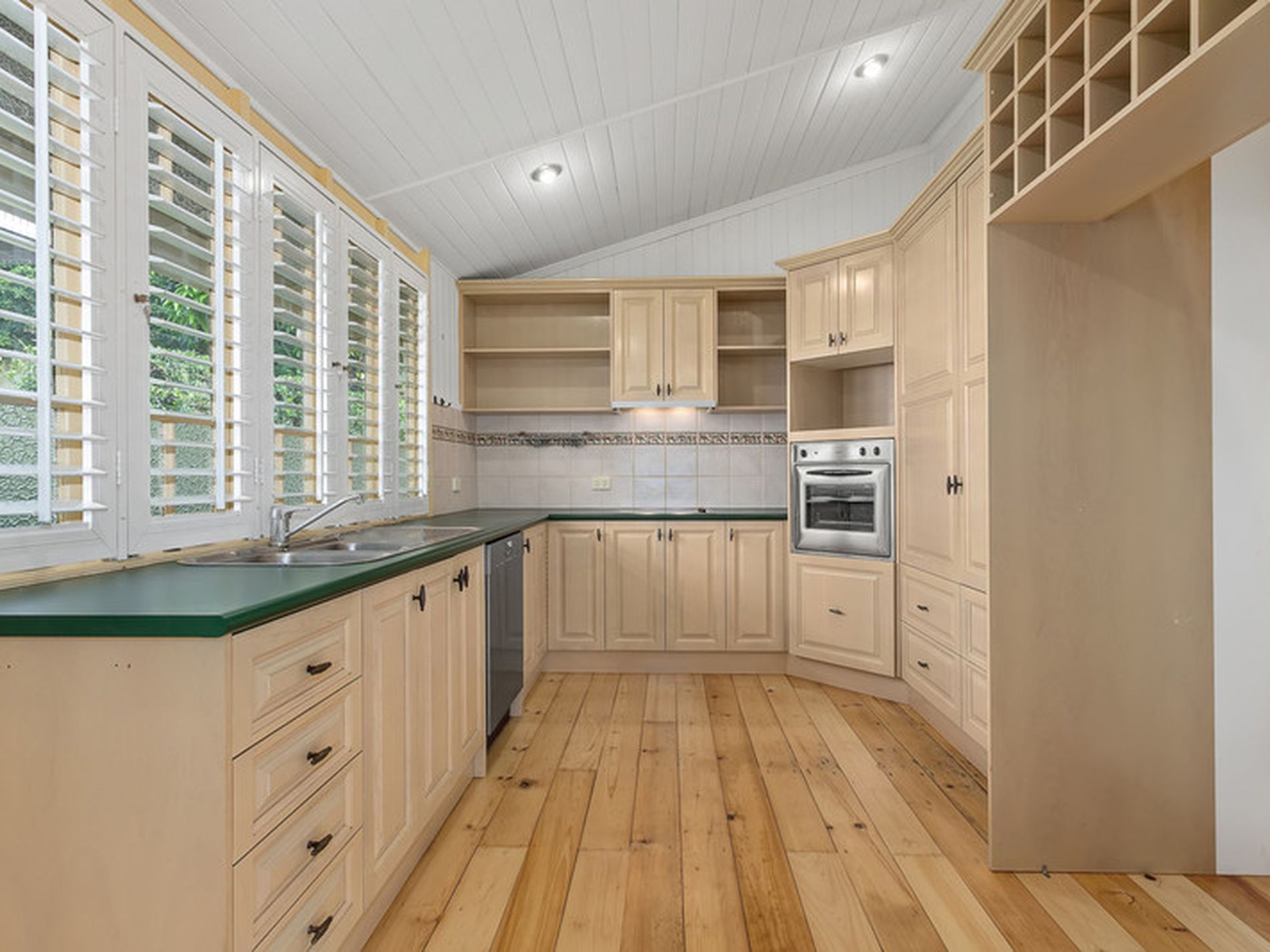 This stylish, executive family home has air-conditioning with large open living spaces complimented by a modern kitchen complete with stainless steel appliances and fridge. There are new polished timber floors throughout, beautiful VJs and high ceilings, all looking out through French doors with the added security of plantation shutters all opening onto generous verandas. The separate dining area opens out to an additional outdoor deck which is perfect for entertaining all year round.
